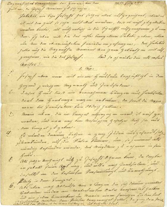 Handschrift Lorbers vom 22. Juli 1843: Anfang der "Jugend Jesu"